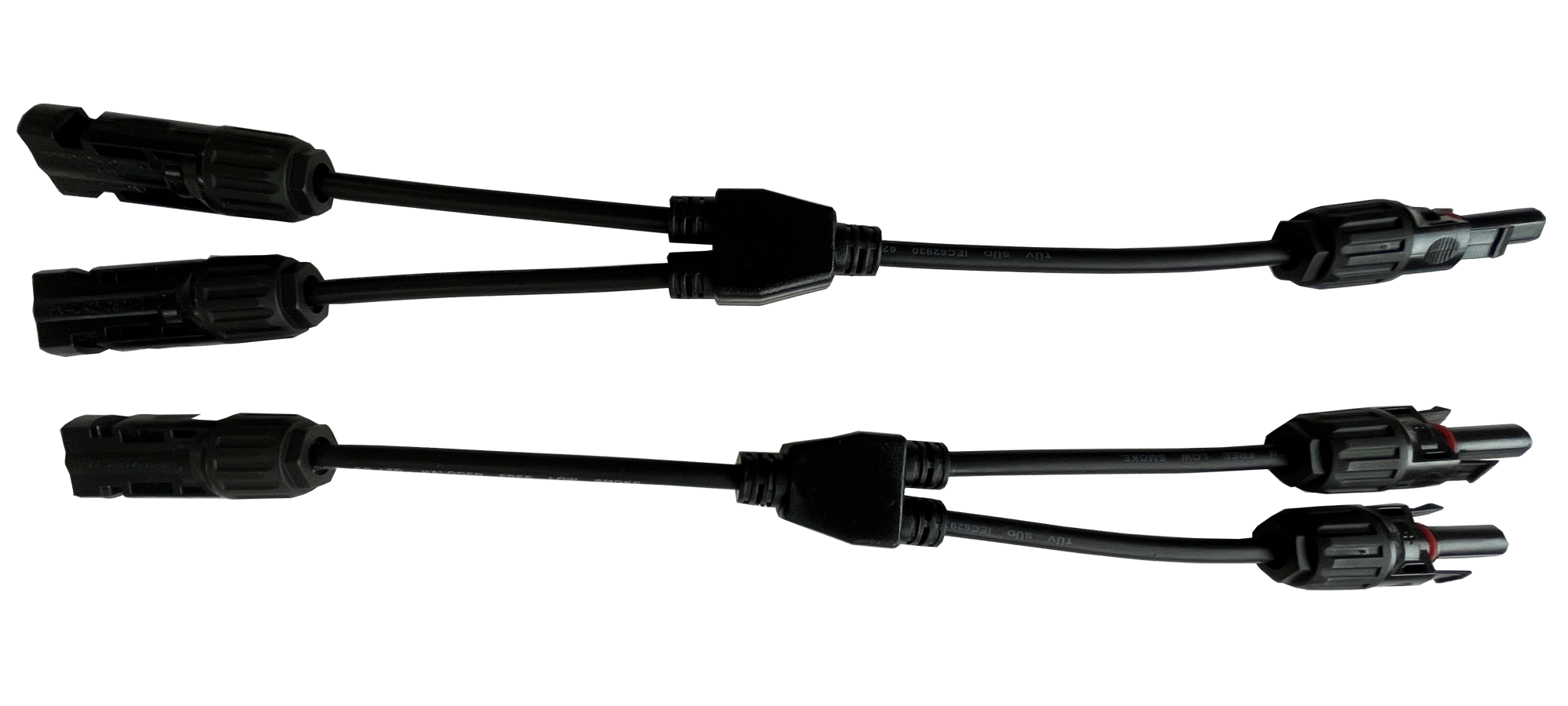 この製品は2枚のソーラーパネルを直列、並列接続可能なY字コネクターになります。オス端子1個+メス端子2個とメス端子1個とオス端子2個の1組セットになります。